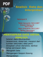 Proses interpretasi data sebenarnya sudah dilakukan bersamaan ketika koding. Empat interpretasi utama dari biplot. Tahap manajemen data kuantitatif adalah mengkonversi dataset yang mentah tersebut menjadi lebih matang. Interpretasi dan evaluasi setelah menemukan pola dan data menarik, selanjutnya adalah menampilkan data tersebut ke dalam bentuk yang mudah dipahami oleh pengguna atau pihak. Interpretasi sejajarah adalah suatu kegiatan penafsiran terhadap data sejarah yang di peroleh, bisa menimbulkan subyektifitas.